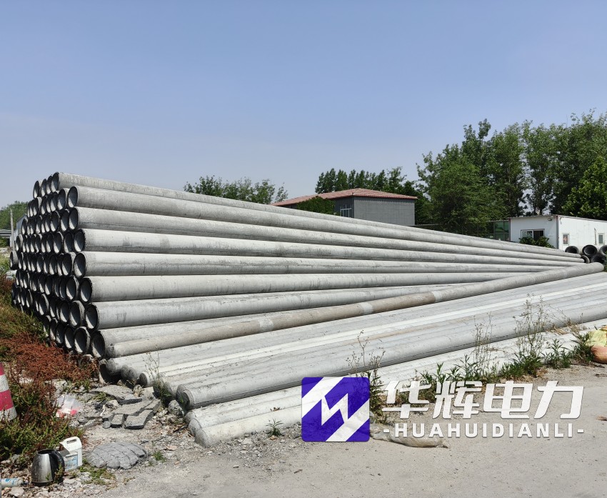 8米合阳水泥电线杆通常采用钢筋混凝土离心成型工艺,杆体呈锥形结构,梢径150mm-190mm,根径230mm-270mm,壁厚40mm-50mm。根据标准GB/T4623-2014,产品混凝土强度等级不低于C40,主筋采用HRB400级钢筋,配筋量根据抗裂弯矩要求设计,标准抗裂弯矩可达12-18kN·m,破坏弯矩不小于24kN·m。杆体重量约0.5-0.8吨,运输安装便捷,适合人工或小型机械施工。